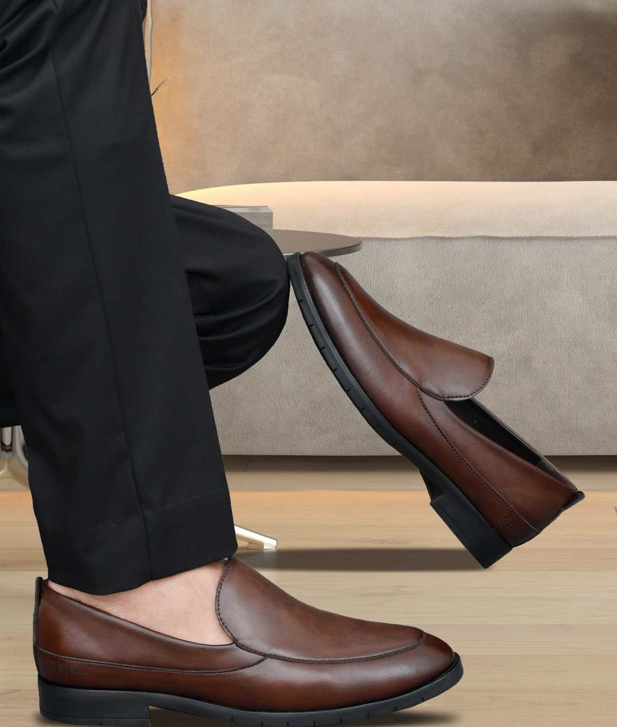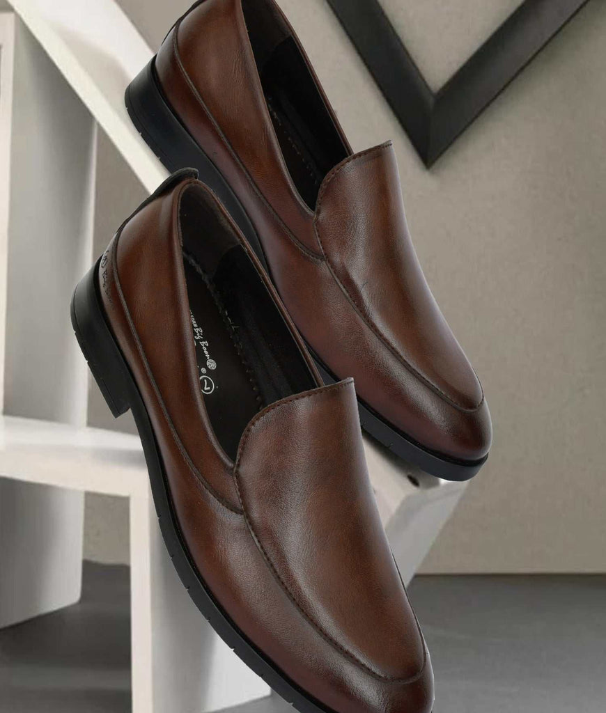 Big Boon Men's Venetian Slip-on Loafer Shoes combine timeless elegance with everyday practicality. Crafted with meticulous attention to detail, these loafers shoes feature the classic Venetian silhouette that transitions seamlessly from office to casual settings. The slip-on design eliminates lacing hassles while maintaining a refined appearance. Premium construction ensures durability and comfort for extended wear, making these loafer shoes a versatile addition to any gentleman's wardrobe. Perfect for those who appreciate sophisticated footwear without compromising on convenience.